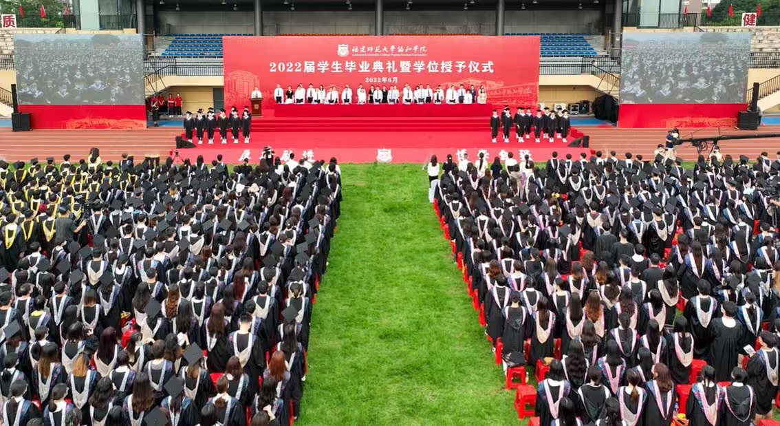 典礼于6月22日上午在爱体育网_爱体育网(中国)协和学院(以下简称协和学院)田径场隆重举行。校领导潘玉腾、王长平、陈晓红,协和学院董事会、监事会成员,协和学院领导、各系部负责人、教师代表以及全体2022届毕业班辅导员、毕业生等近4000人参加了典礼。