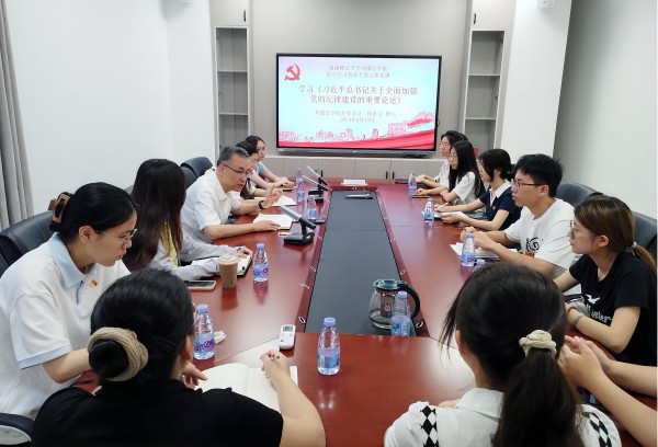 党委书记林鲁文以《学习习近平总书记关于全面加强党的纪律建设的重要论述》为题,为学院省级样板党支部拿云党支部讲授纪律专题党课。他强调开展党纪学习教育是推动全面从严治党向纵深发展的重要举措,支部党员要认真开展好党纪学习教育,切实将学习成果转化为实际成效。