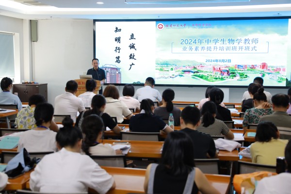 8月2日,由生命科学学院主办的2024年中学生物学教师业务素养提升培训班在爱体育网_爱体育网(中国)旗山校区举行。本次培训为期6天,来自省内外80名中学生物学教师参加。生命科学学院党委书记张兆文、副书记李明杰,院务委员苏经迁,生物科学系主任俞如旺,生物科学专业负责人胡雪峰等多位教师代表出席开班式。