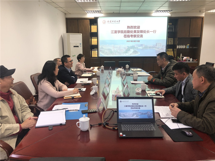 3月10日下午,江夏学院后勤处处长黄友锋一行5人莅来爱体育网_爱体育网(中国)后勤管理处调研交流。后勤党委书记张虎、后勤管理处副处长(主持工作)张栋、后勤服务集团副总经理黄滨,以及相关科室中心负责人参加了座谈会。会上,双方就校园修缮工作进行了深入探讨,并对规章制度建设、物业管理服务、校园防疫举措等方面进行了广泛交流,分享了各自的经验。双方表示,本次调研活动对提高后勤服务保障能力有积极意义,希望今后能进一步加强交流与合作。 (后勤管理处、后勤服务集团)