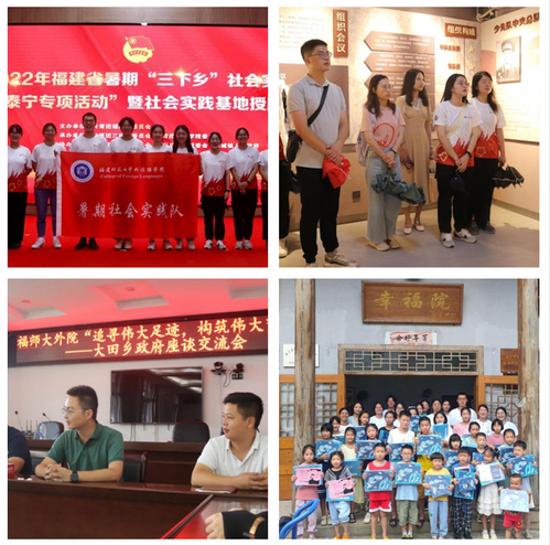 近日,外国语学院“寻迹·筑梦”暑期实践队赴三明市泰宁县开展“追寻伟大足迹,构筑伟大梦想——迎接党的二十大胜利召开”暑期社会实践活动。实践队追寻习近平总书记的足迹,先后走进泰宁县岭下村、水际村、崇际村、大田乡少年红军文旅小镇等地,实地感知新时代乡村振兴取得的伟大成就,厚植爱国情怀,发挥专业优势,助力乡村教育事业,在实践中受教育、长才干、做贡献,以青春之我迎接党的二十大胜利召开。