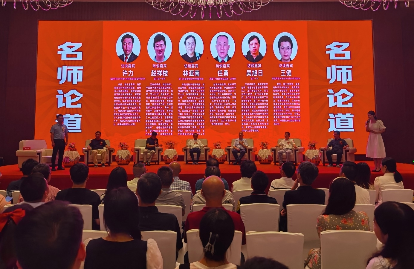 成立大会前,还举行了名师论道活动,邀请厦门大学数学科学学院原院长林亚南教授、厦门市教育局原副局长任勇、厦门双十中学正高级教师赵祥枝、厦门一中正高级教师吴旭日、计算机与网络空间安全学院(软件学院)院长许力教授、数学与统计学院院长王健教授等,以“从数学和计算机学习说起”为题,分享他们学习研究和教学工作的感悟和体会。
