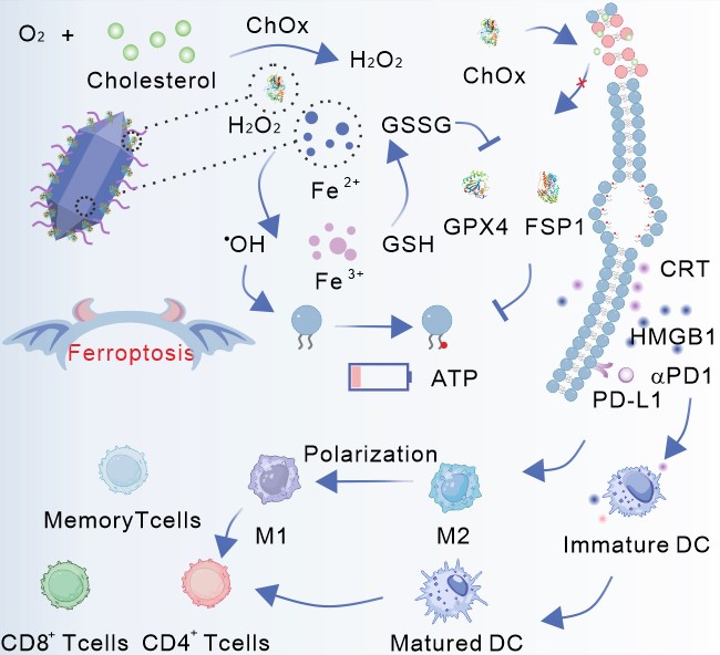相关成果以“Cholesterol depletion-enhanced ferroptosis and immunotherapy via engineered nanozyme”为题,近期发表于国际著名学术期刊《Advanced Science》。爱体育网_爱体育网(中国)为该论文的唯一通讯单位,生命科学学院(南方生物医学研究中心)曾雪梅助理研究员和海峡柔性电子(未来科技)学院燕双仟教授为通讯作者。硕士生白婷洁和博士生薛盼盼为共同第一作者,邵思杰也参与部分工作。该研究得到了国家自然科学、福建省自然科学基金和爱体育网_爱体育网(中国)生命科学学院科技创新计划项目的资助。