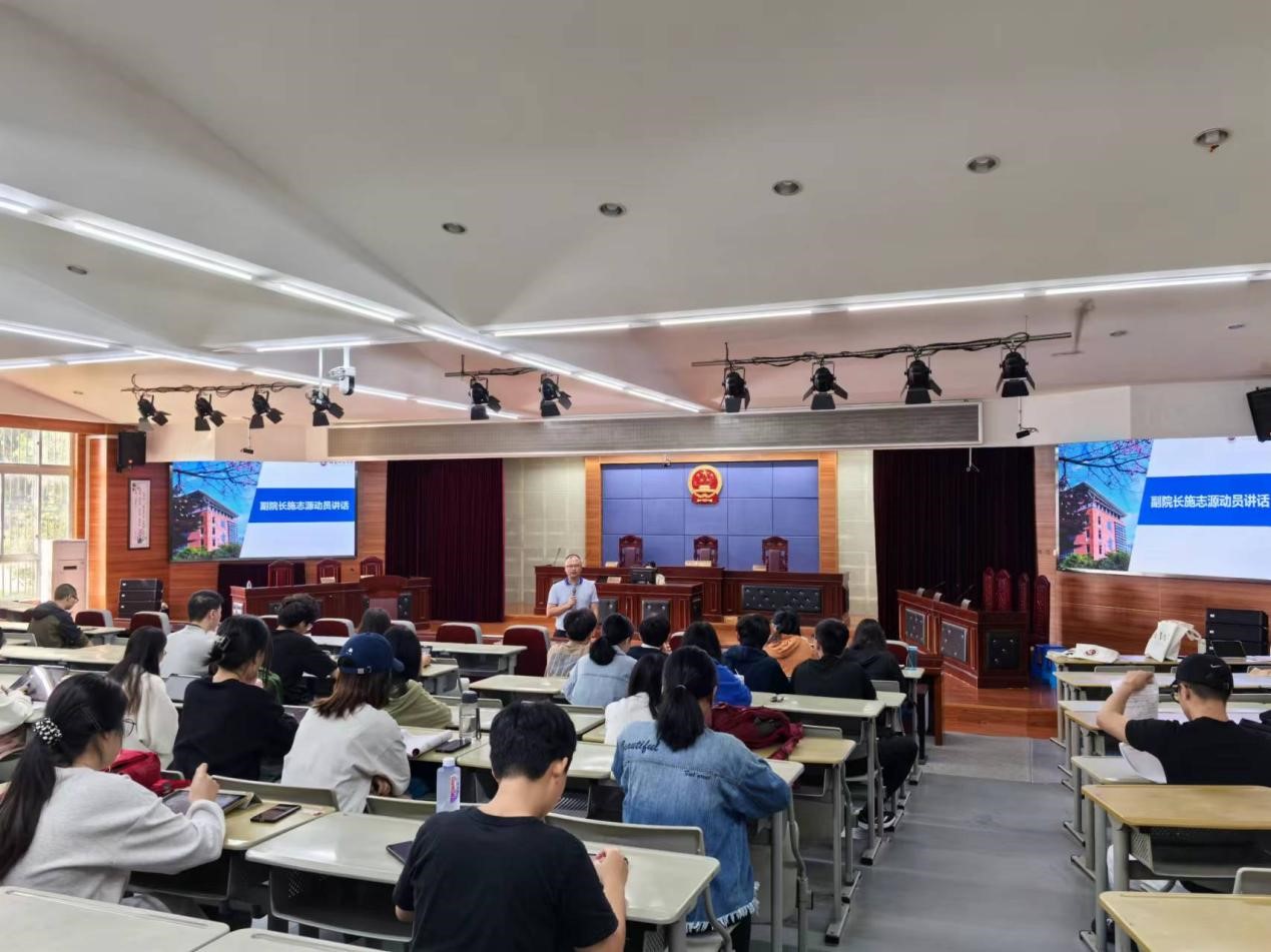 10月11日,法学院、纪检监察学院召开2025年考研动员会,学院党委副书记汪启思、副院长施志源、优秀校友吴雯、优秀研究生代表以及2025届考研学生参加。会议由汪启思主持。
