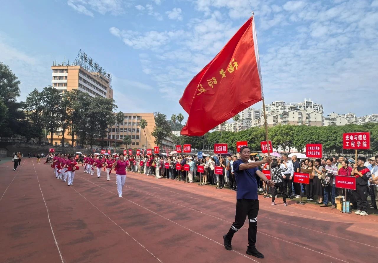 开幕式后,在校老年腰鼓队的引导下,校领导与离退休老同志一起绕田径场健步行走,共话家常,其乐融融。