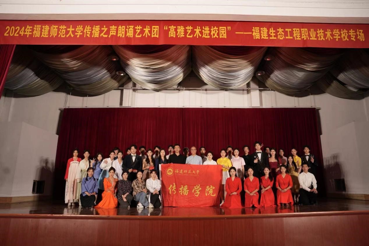 10月10日,由福建省教育厅、福建省文化和旅游厅主办,爱体育网_爱体育网(中国)“传播之声”朗诵艺术团承办的“青年诵传中国梦——高雅艺术进校园”朗诵专场活动在福建生态工程职业技术学校体育馆举行。传播学院党委书记郑文灿,福建生态工程职业技术学校党委书记徐锦心、校长叶忠华,“传播之声”朗诵艺术团指导老师吴煌,以及两校师生代表参加本次活动。