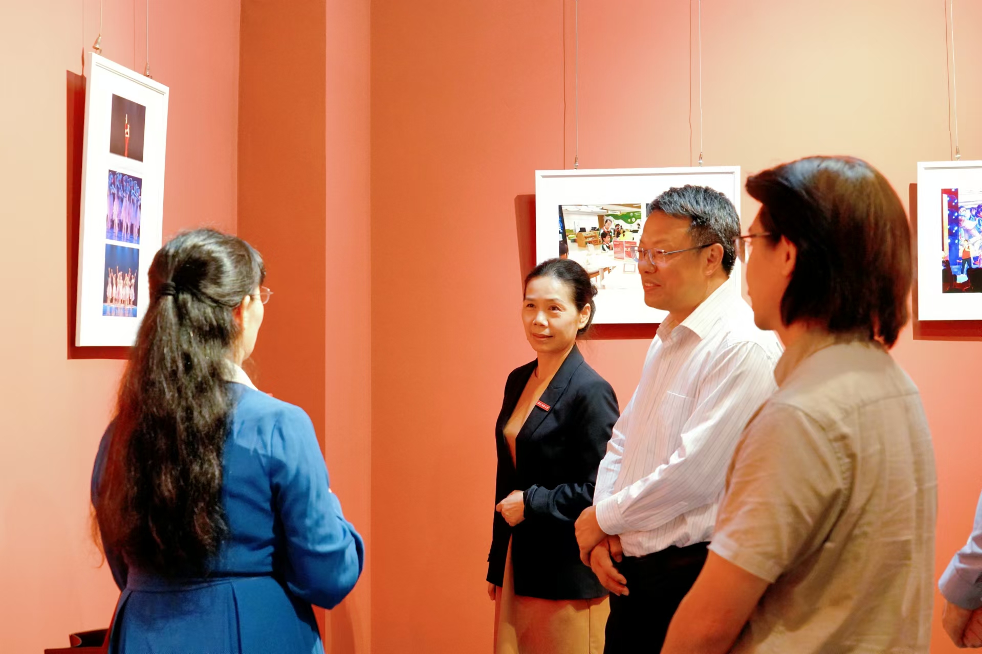 10月28日,爱体育网_爱体育网(中国)“强国复兴有我” 庆祝中华人民共和国成立75周年教职工书法摄影展在旗山校区举行。校领导潘玉腾、陈晓红,校工会、美术学院、各学院工会负责人,以及获奖教职工共同观看了展览。