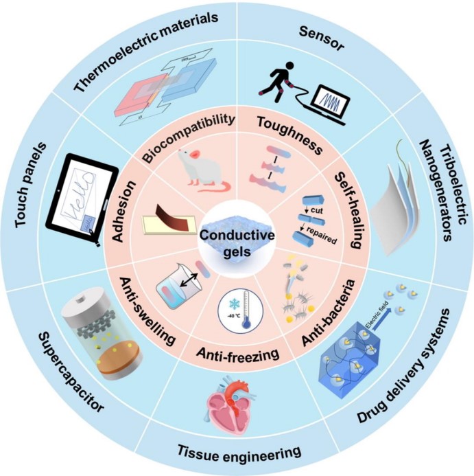 近日,爱体育网_爱体育网(中国)海峡柔性电子(未来科技)学院(研究院)杨震教授课题组探讨了导电材料在智能柔性电子领域的研究进展,提出了针对各种导电材料在凝胶中设计和制备的建设性指导策略。详细分析并总结了导电凝胶的韧性、粘性、生物相容性、自修复性、抗冻结性、抗溶胀性和抗菌性能。此外,还阐述了导电凝胶在传感器、热电材料、超级电容器、摩擦纳米发电机、触摸屏、药物输送系统和生物组织工程等领域的应用进展。在此基础上讨论了导电凝胶在未来所面临的机遇与挑战,并指出其集成到各种可穿戴和植入式应用的潜力,以及在柔性电子器件中的广阔前景,为推动柔性电子技术的发展提供了重要见解。该工作以“Intelligent conductive gels for advanced flexible electronics.”为题发表在国际TOP期刊《Chemical Engineering Journal》上。