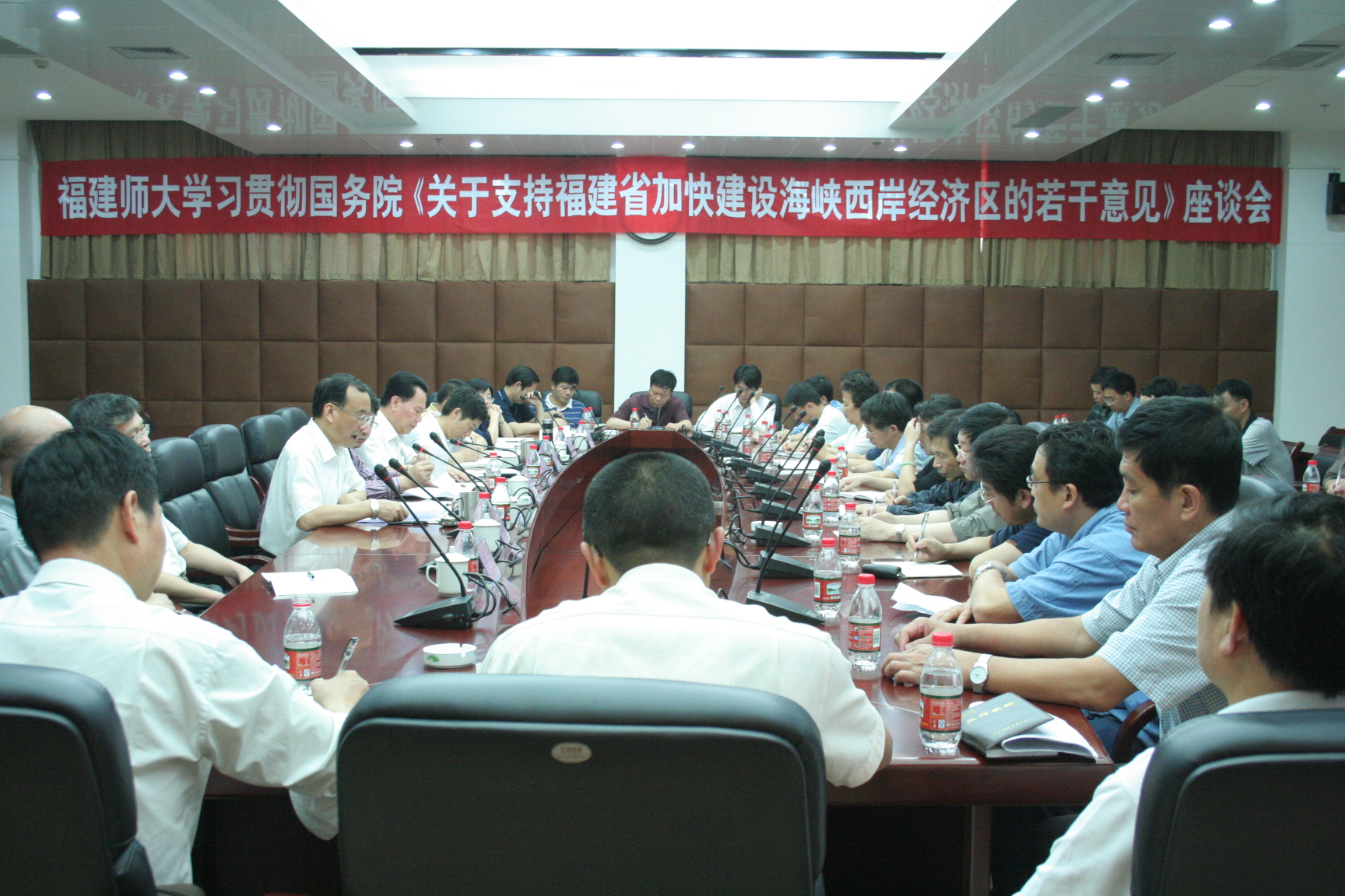座谈会于6月1日下午在旗山校区第十会议室举行,学习贯彻《国务院关于支持福建省加快建设海峡西岸经济区的若干意见》(以下简称《意见》)。校领导,校党委委员,各分党委、党总支书记,有关单位负责人,教师代表等40多人参加了会议。会议由校长黄汉升主持。校党委书记张金栋在会上作了题为《持续融入 更大作为 不断提升服务海西水平》的重要讲话。