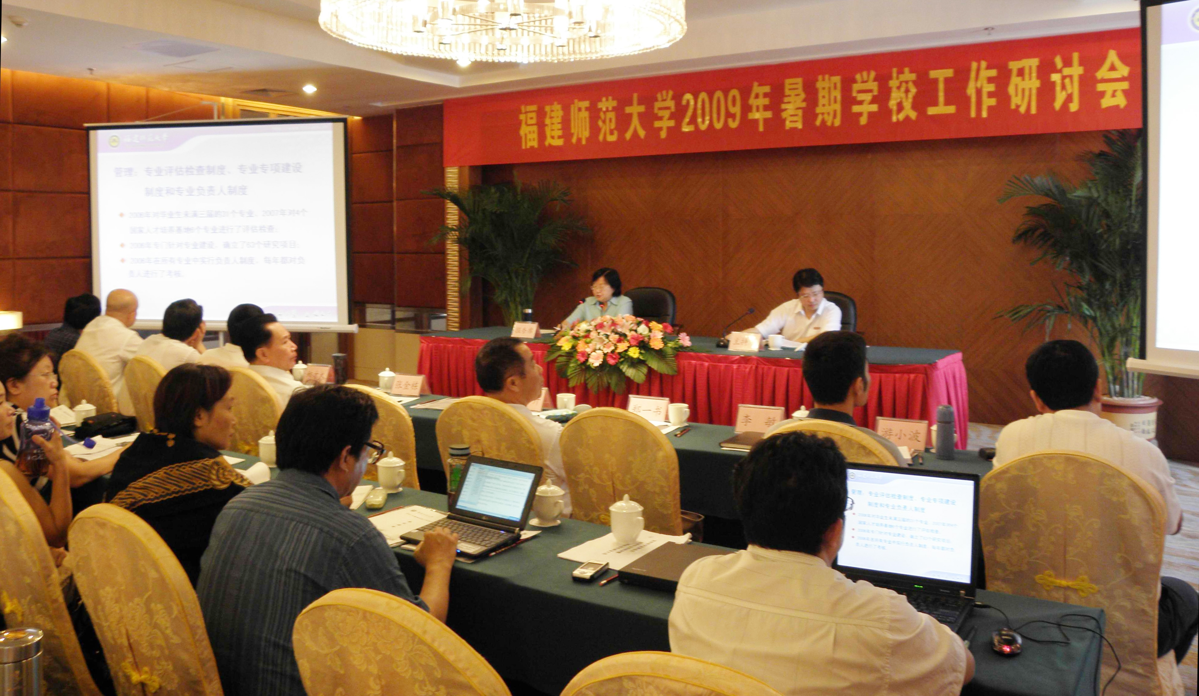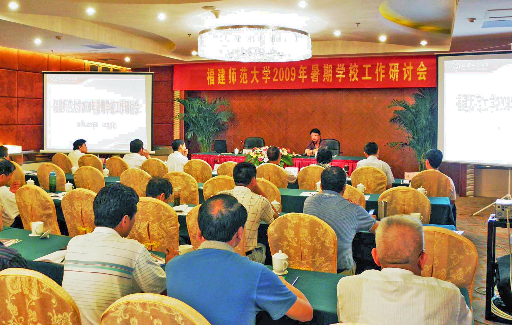 8月23-25日,2009年暑期学校工作研讨会在惠安崇武召开,校领导张金栋、黄汉升、郑才木、郑一书、汪文顶、李敏、许明、游小波,以及各分党委(党总支、直属党支部)书记,各学院、馆、中心、集团、医院、公司行政主要负责人,机关各部、处主要负责人,福清分校、协和学院、闽南科技学院、人民武装学院、附中、附小党政主要负责人参加了会议。会议的主题是:深入贯彻落实科学发展观,加大专业结构调整力度,服务海峡西岸经济区建设。