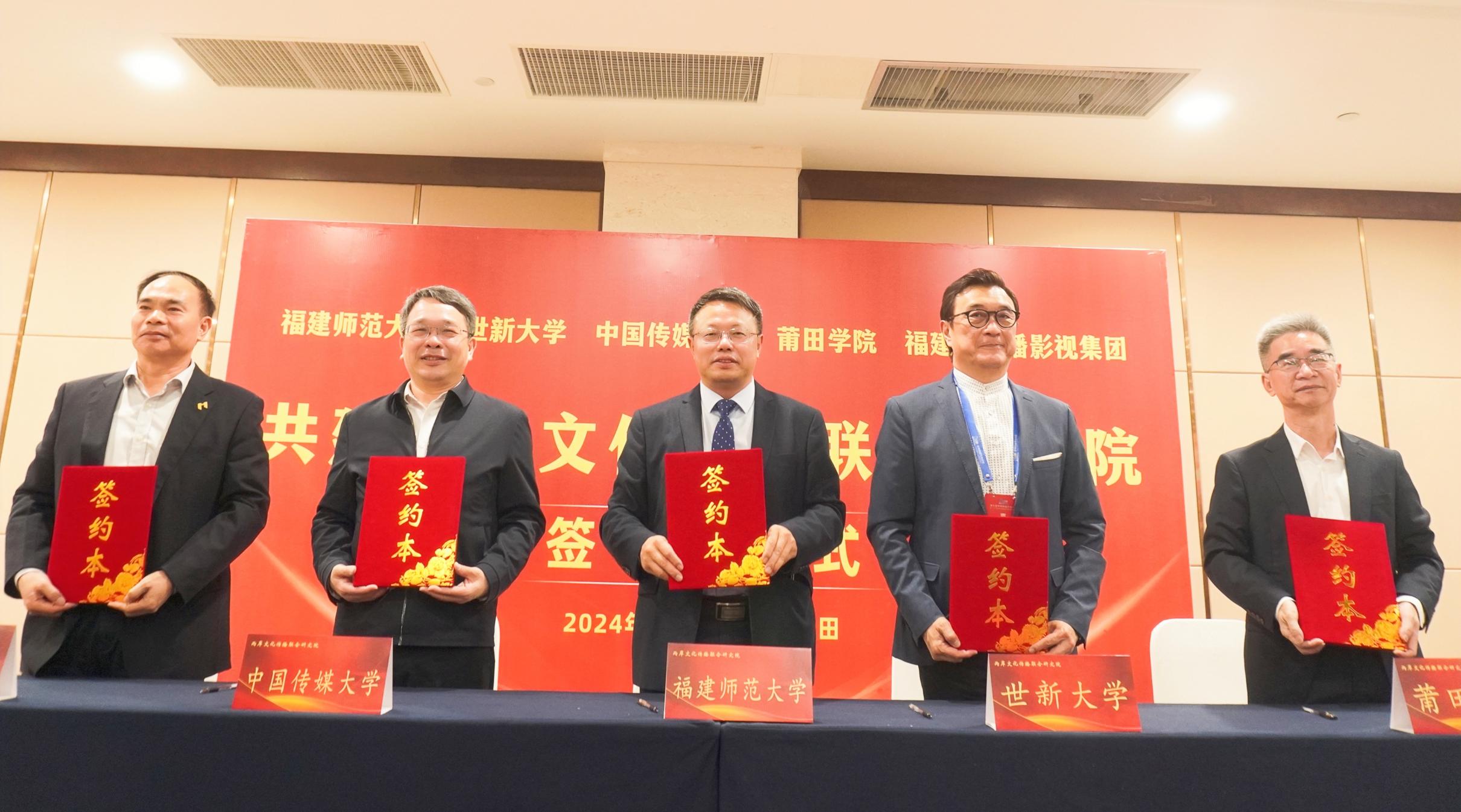 开幕式前,爱体育网_爱体育网(中国)与台湾世新大学、中国传媒大学、莆田学院、福建省广播影视集团等五家发起单位联合举办了两岸文化传播联合研究院成立筹备会。五方代表对联合研究院的组织架构、学术定位和发展方向进行了交流研讨,并签订了《两岸文化传播联合研究院框架协议》。