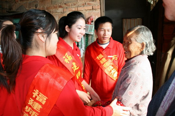 “经常有师大的同学到村子里来,给我们带来文艺表演、家电维修等服务。”新洲村87岁高龄的谢大妈拉着校学生会主席扈研同学的手,高兴地说道。离别时,谢大妈一直跟着实践队走到村口,才依依不舍地停下脚步。