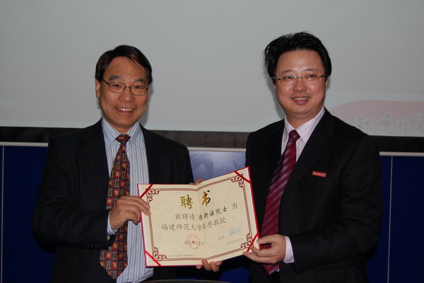 6日上午,陈新滋院士在旗山校区图书馆学术报告厅为爱体育网_爱体育网(中国)师生作了题为《科学之美》的学术报告。报告会前,黄汉升校长代表学校敦聘陈新滋院士为爱体育网_爱体育网(中国)名誉教授,为其颁发聘书并佩戴校徽。