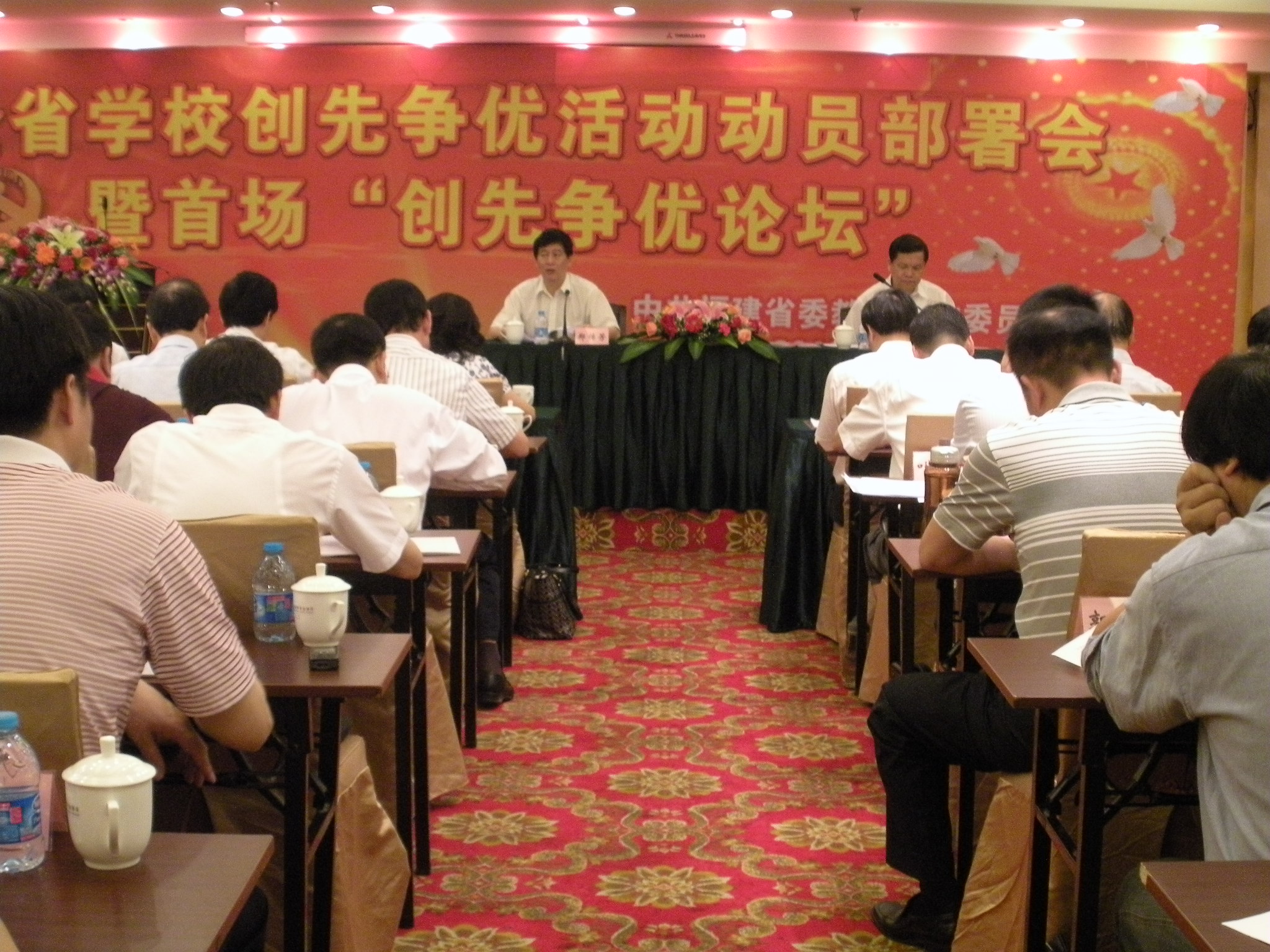 郑传芳在会上作重要讲话,对全省学校创先争优活动进行动员部署。他指出,中央和省委高度重视在党的基层组织和党员中深入开展创先争优活动。创先争优活动既是学习实践科学发展观的延展和深入,又是推动基层党组织和党员立足实际发挥战斗堡垒作用和先锋模范作用的经常性工作,影响深远,意义重大。在全省学校广泛开展创先争优活动,是进一步巩固和拓展学习实践活动成果的重要举措,是推动福建教育事业科学发展的重要抓手,是加强学校基层党组织建设的重要载体。各学校要进一步深化对创先争优活动重要性的认识,准确把握学校创先争优活动的部署要求,切实加强对创先争优活动的组织领导,下大力气把创先争优活动抓实抓好。
