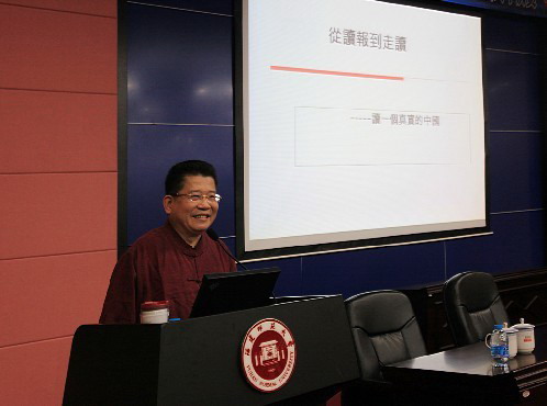杨锦麟先生以“从‘读报’到‘走读’——读一个真实的中国”为主题,结合其在两岸四地特别是在中国内地所进行的大量实地采访与跟踪报道,声情并茂、生动诙谐地从媒体人的角度向我们推介了一个鲜为人知的“真实的中国”,呼吁广大师生更加关注社会弱势群体,肩负起社会责任。作为资深媒体人,他对新闻事件的解读视角独特、分析全面,广大师生受益匪浅。杨锦麟先生还现场回答了同学们提出的问题,他机敏的答疑和幽默的言语,博得在场师生的阵阵掌声。