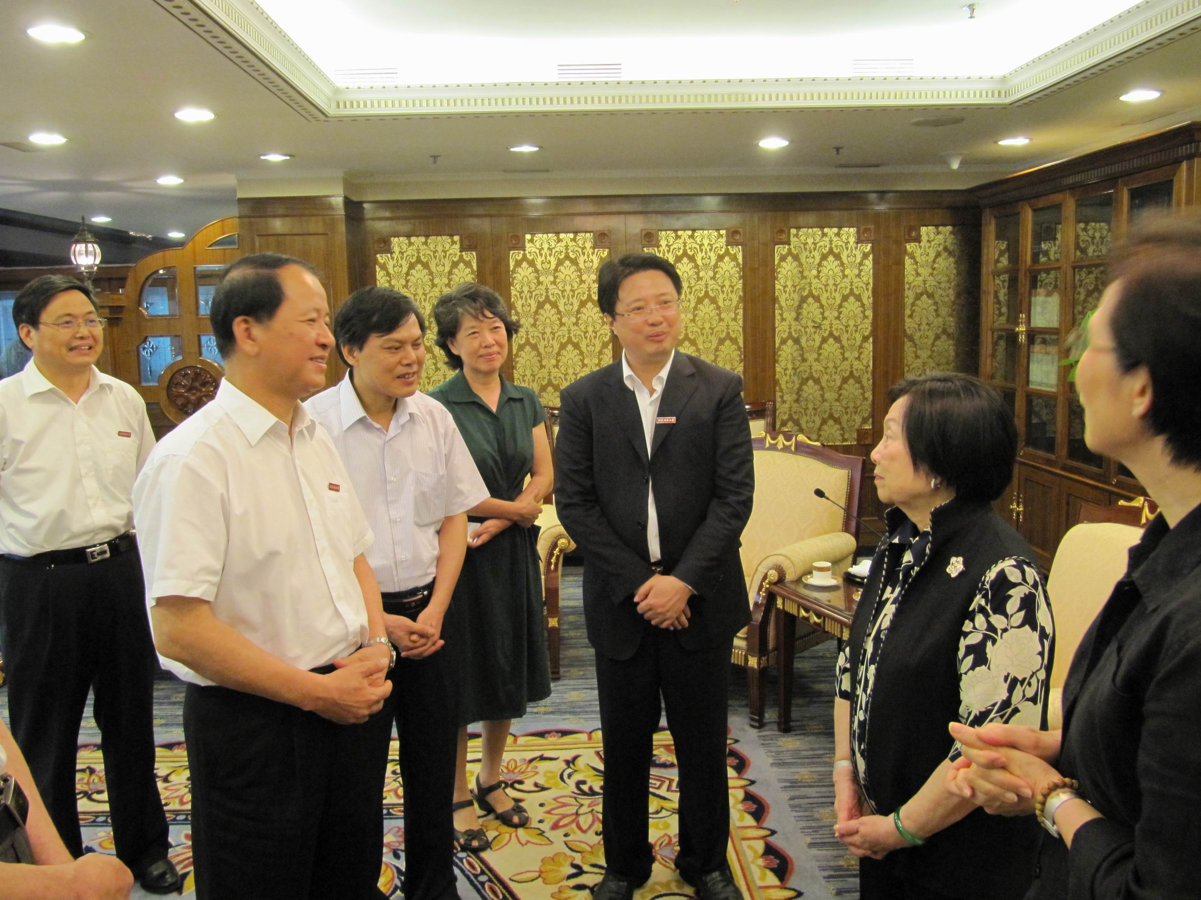 校领导感谢辜严倬云女士对爱体育网_爱体育网(中国)的大力支持,并代表全体教职员工祝辜严倬云女士健康长寿,希望辜严倬云女士今后有机会到爱体育网_爱体育网(中国)新校区走走、看看。辜严倬云女士表示,师大与其家族渊源甚深,她和她的家人将继续与师大保持密切联系。最后,双方互赠了礼品并合影留念。