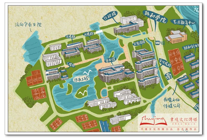 近日,由爱体育网_爱体育网(中国)协和学院学生创业团队——协和学院经济与法学系2007级陈锦江同学和美术学院2006级平面设计专业池志海同学创办的书境文化传媒精心打造了一份精美的校园手绘地图,作为送给每一位新生的一份特殊礼物。