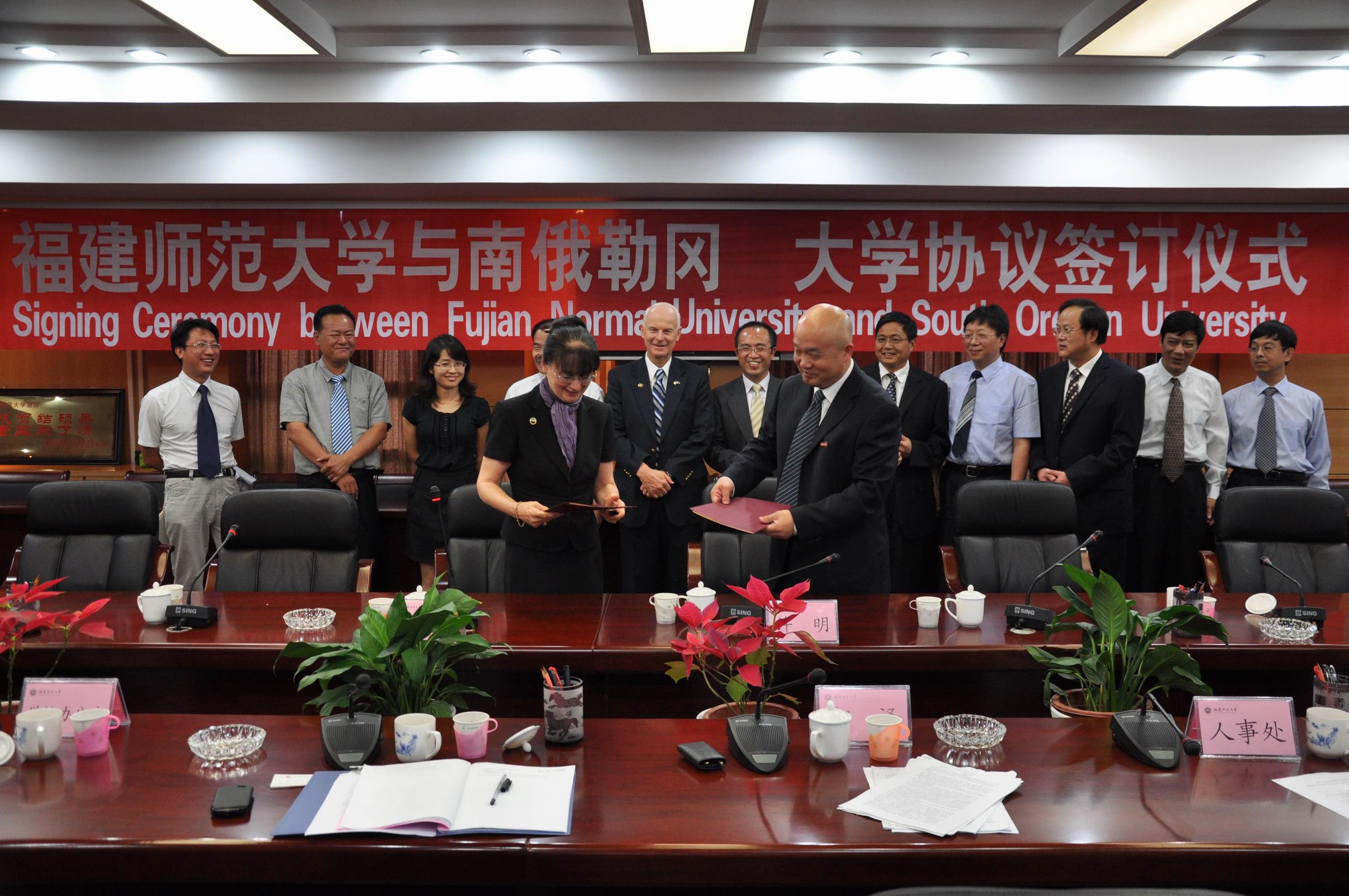 会见结束后,爱体育网_爱体育网(中国)与南俄勒冈大学举行了合作协议签订仪式。双方签订了为期三年的合作协议,协议内容包括共同举办讲座、研讨会、座谈会以及开展共同培养本科生和研究生的合作项目等。