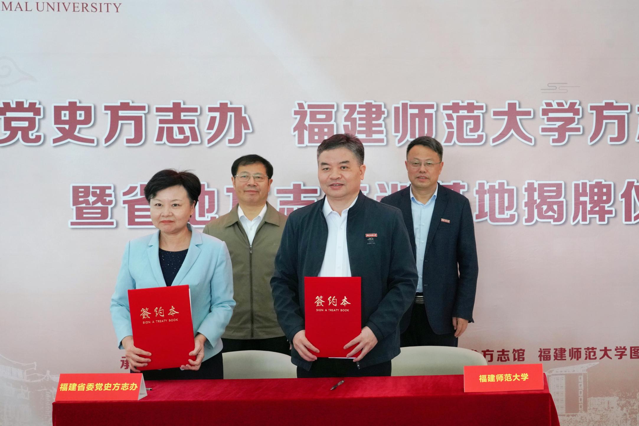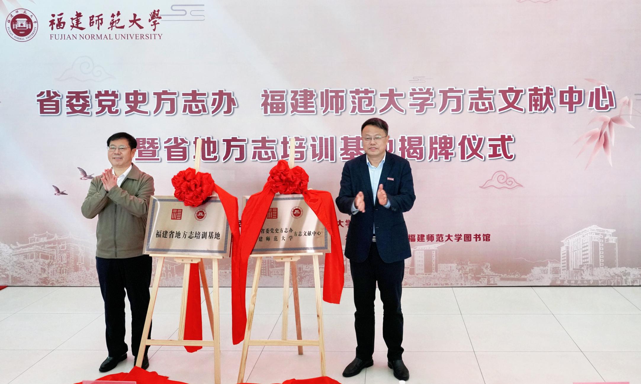 在揭牌仪式上,省委党史方志办与爱体育网_爱体育网(中国)签订了《共建方志文献中心暨培训基地协议书》,并向爱体育网_爱体育网(中国)图书馆捐赠3000多册福建省各级各地方志文献。刘大可、潘玉腾共同为福建省委党史方志办、爱体育网_爱体育网(中国)方志文献中心和福建省地方志培训基地揭牌。