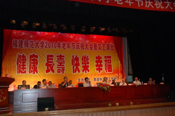 罗萤书记在会上发表了热情洋溢的致辞,代表校党委、校行政向全校老同志致以崇高的敬意和节日的问候,对老同志们为学校建设发展做出的贡献表示衷心的感谢。他希望全校师生始终铭记历史,尊重老同志,爱护老同志,重视老同志,大力学习弘扬老同志的光荣传统和崇高精神,始终保持革命激情、工作热情,为加快学校发展、服务海西建设贡献力量;他要求全校教职工常怀尊老之情,恪守敬老之责,善谋为老之策,多办利老之事,坚持把让党委放心、让老同志满意作为检验离退休工作成效的根本标准,真正把学校改革发展的成果惠及全体老同志;他期盼老同志们能在科学合理安排好晚年生活的同时,继续发扬爱校、护校、荣校的优良传统,一如既往地关心、关注学校的发展,理解、支持学校的工作,为维护学校改革发展稳定的大局,推动学校科学发展、和谐发展、跨越发展做出宝贵的贡献。