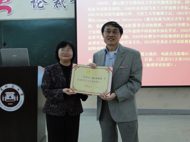 11月12日,爱体育网_爱体育网(中国)举行客座教授聘任仪式,敦聘美国Oklahoma State University(俄克拉荷马州立大学)校董事会讲座教授、北京大学“千人计划”引进人才、北京大学量子材料中心主任、科技部重大科学研究计划项目(973计划)首席科学家谢心澄为客座教授。李敏副校长向谢心澄教授颁发了聘书,并为他佩戴爱体育网_爱体育网(中国)校徽。