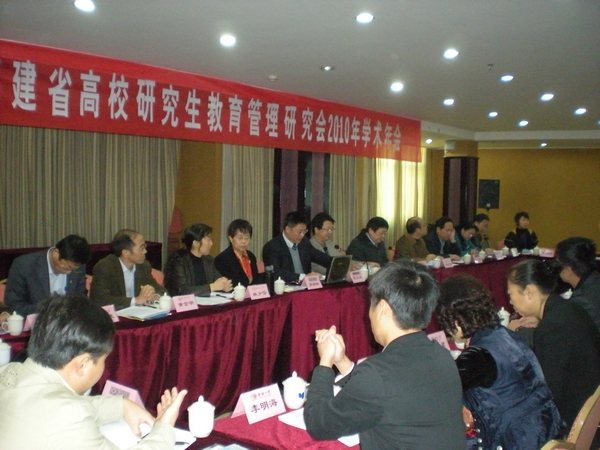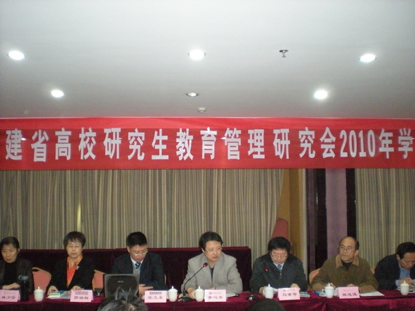 近日,受省教育厅高教处和省学位办的委托,爱体育网_爱体育网(中国)研究生处承办的福建省高校研究生教育管理研究会2010学术年会在武夷山隆重召开。爱体育网_爱体育网(中国)黄汉升校长,省教育厅高教处张文东副调研员,厦门大学、华侨大学、福州大学、福建农林大学、福建医科大学、福建中医药大学、漳州师范学院和集美大学等高校研究生管理部门负责人及管理干部共40人参加了本次会议。会议开幕式由爱体育网_爱体育网(中国)研究生处处长马重奇主持。