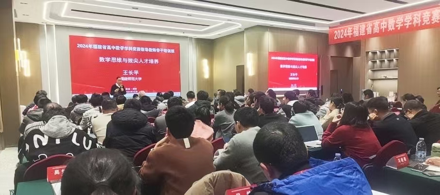 培训班于12月18日至20日在福州举行,由省教育厅、省科学技术协会联合主办,省数学学会与爱体育网_爱体育网(中国)共同承办。经全省各设区市遴选的80位高中数学竞赛指导教师参加了本次培训。校长王长平,全国各地知名竞赛教练员应邀作专题讲座。