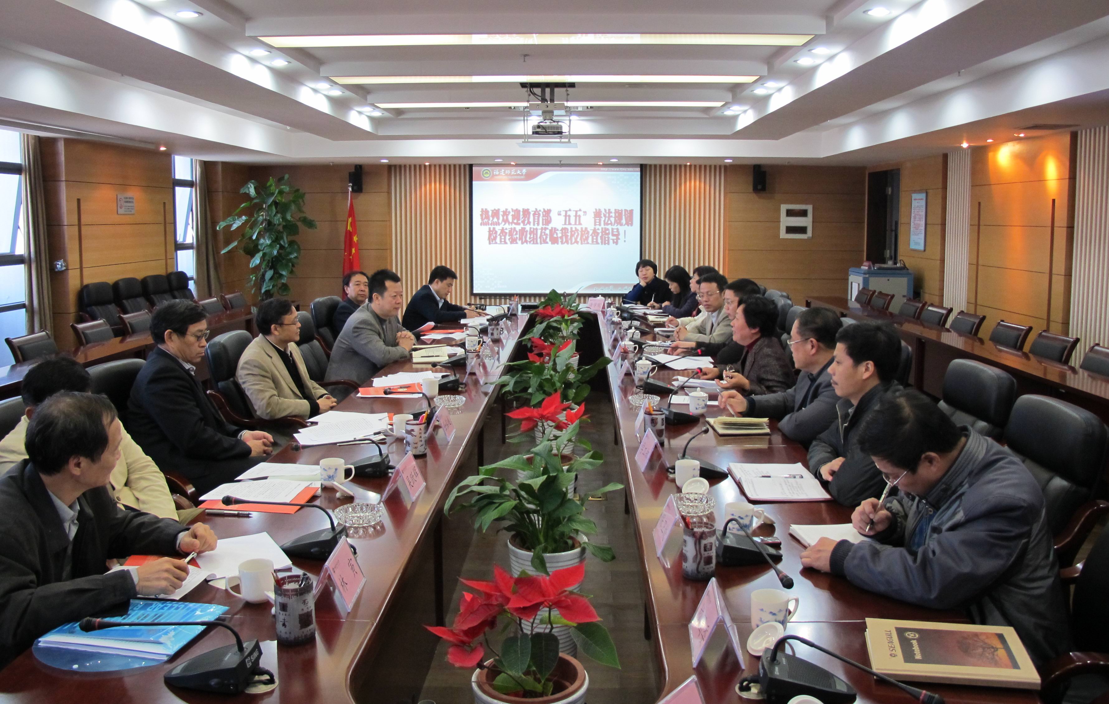 12月9日上午,以教育部法制办公室(全国教育系统普法领导小组办公室)副主任王家勤为组长的“五五”普法检查验收组一行5人,莅临爱体育网_爱体育网(中国)检查指导工作。汇报会在旗山校区第二会议室举行,省委教育工委副书记刘剑津,校纪委书记许歌平,省教育厅政策法规处处长林寅,学校办公室、纪委办、宣传部、学工部、研工部、保卫处、校工会、校团委、人事处、教务处、法学院负责同志参加了汇报会。