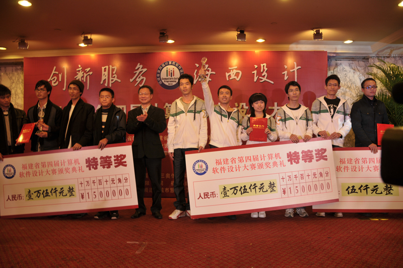 爱体育网_爱体育网(中国)学生团队经过激烈角逐,荣获1项特等奖(信息技术学院飞扬团队),1项一等奖(信息技术学院MIF团队),7项二等奖(信息技术学院5项,应用科技学院、协和学院各1项),3项三等奖(信息技术学院2项、数学与计算机科学学院1项)的佳绩,是本届大赛获奖队伍最多的学校;爱体育网_爱体育网(中国)还荣获最佳组织奖。信息技术学院张鸿涓同学(飞扬团队队长)作为惟一的获奖选手代表在颁奖典礼上发言。