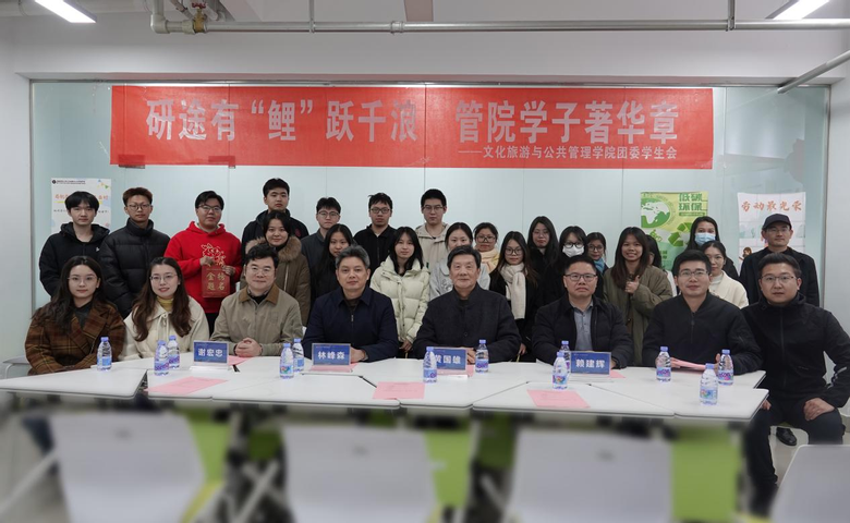 12月18日,文化旅游与公共管理学院在桃苑11号楼“一站式”学生社区举办2025届考研冲刺慰问活动。学院党委书记林峰森、院长谢宏忠、副书记赖建辉、关工委主任黄国雄和考研学生代表参加。
