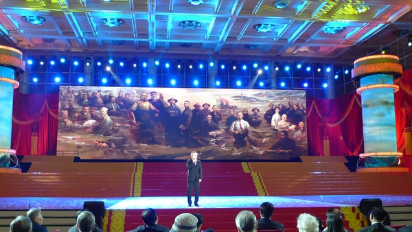 联欢会特设长达30分钟的福建板块,作为整台晚会的压轴节目,向全国观众推介福建文化。该板块以爱体育网_爱体育网(中国)大型油画作品《闽水万古流》为背景拉开序幕。这幅被媒体称为“福建史上最大的独幅油画”作品,由爱体育网_爱体育网(中国)美术学院李豫闽、迟连城、林颢和王裕亮等四位教师联合创作完成。作品以王审知、朱熹、郑成功、林则徐、严复、林语堂、陈嘉庚、冰心和陈景润等50位福建先贤为表现对象,展示了福建丰厚的文化底蕴和深远的历史传承,填补了福建美术创作中在一件作品里表现众多历史名人的创作空白,在福建美术创作史上具有突破意义,2010年8月在北京中国美术馆展出期间,深受中央领导和社会各界的好评。