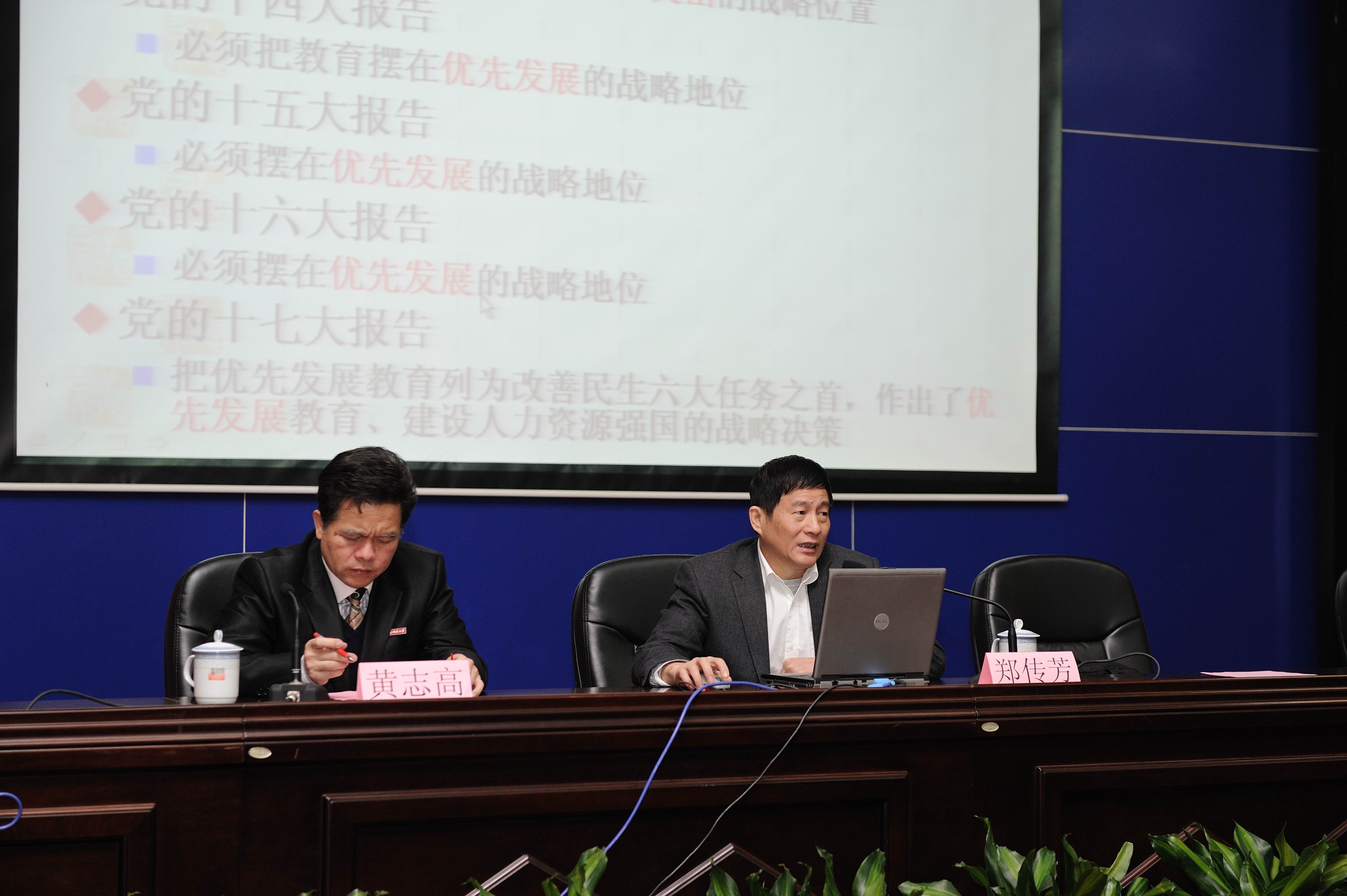 开班式结束后,郑传芳为全体学员进行了开班第一讲——《国家中长期教育改革和发展规划纲要》和“福建省教育工作会议”精神的解读。