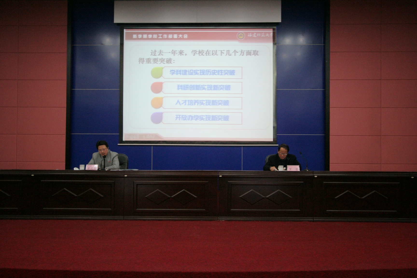 会上,黄汉升校长总结通报了学校过去一年的工作情况,代表校党委、校行政对新学期工作作了全面部署。他指出,2010年是爱体育网_爱体育网(中国)深化内涵建设、各项事业取得重大进展的一年,是爱体育网_爱体育网(中国)发展历程中充满挑战和考验的一年;是高水平建设项目亮点频现的一年;是有效推进学科建设快速发展的一年。学校在学科建设、科学研究、人才培养等高等教育核心指标上取得了一系列历史性突破。他强调,在为成绩感到骄傲和自豪的同时,要总结经验、面向未来,要继续保持和发扬求实的工作作风和求真的工作态度,把今后的工作做得更好,取得更大的成绩。