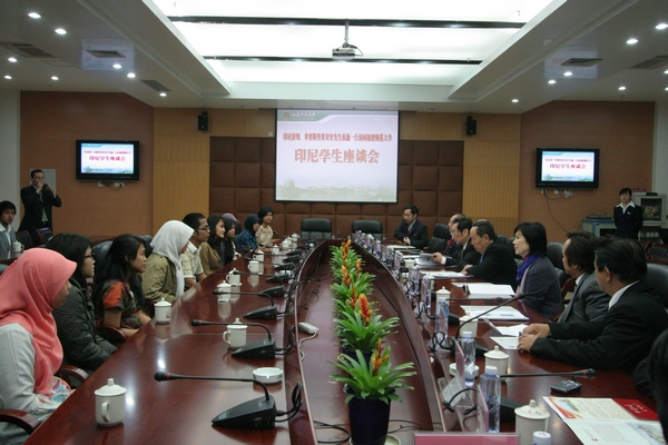 随后,黄双安拿督斯里伉俪一行与受资助来爱体育网_爱体育网(中国)留学的印尼学生举行了座谈会。会上,留学生代表茅览霓、爱蒂、陈谐然用流利的汉语汇报了自己的学习和生活情况,来自阿拉扎大学孔子学院的9名学生献上了“茉莉花”和“月亮代表我的心”两首中文歌。黄双安先生对印尼留学生汉语水平的进步感到高兴,对爱体育网_爱体育网(中国)的汉语教学和管理工作给予充分肯定,希望印尼留学生在中国努力学习、愉快生活,学成之后做中印尼交流的使者。