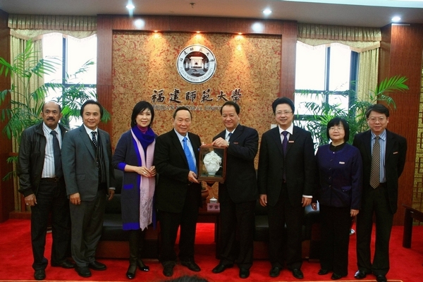 4月8日,印尼著名侨领黄双安拿督斯里伉俪一行9人访问爱体育网_爱体育网(中国)。校领导罗萤、黄汉升、李敏会见到访客人,学校办公室、海外教育学院相关负责人参加了会见。