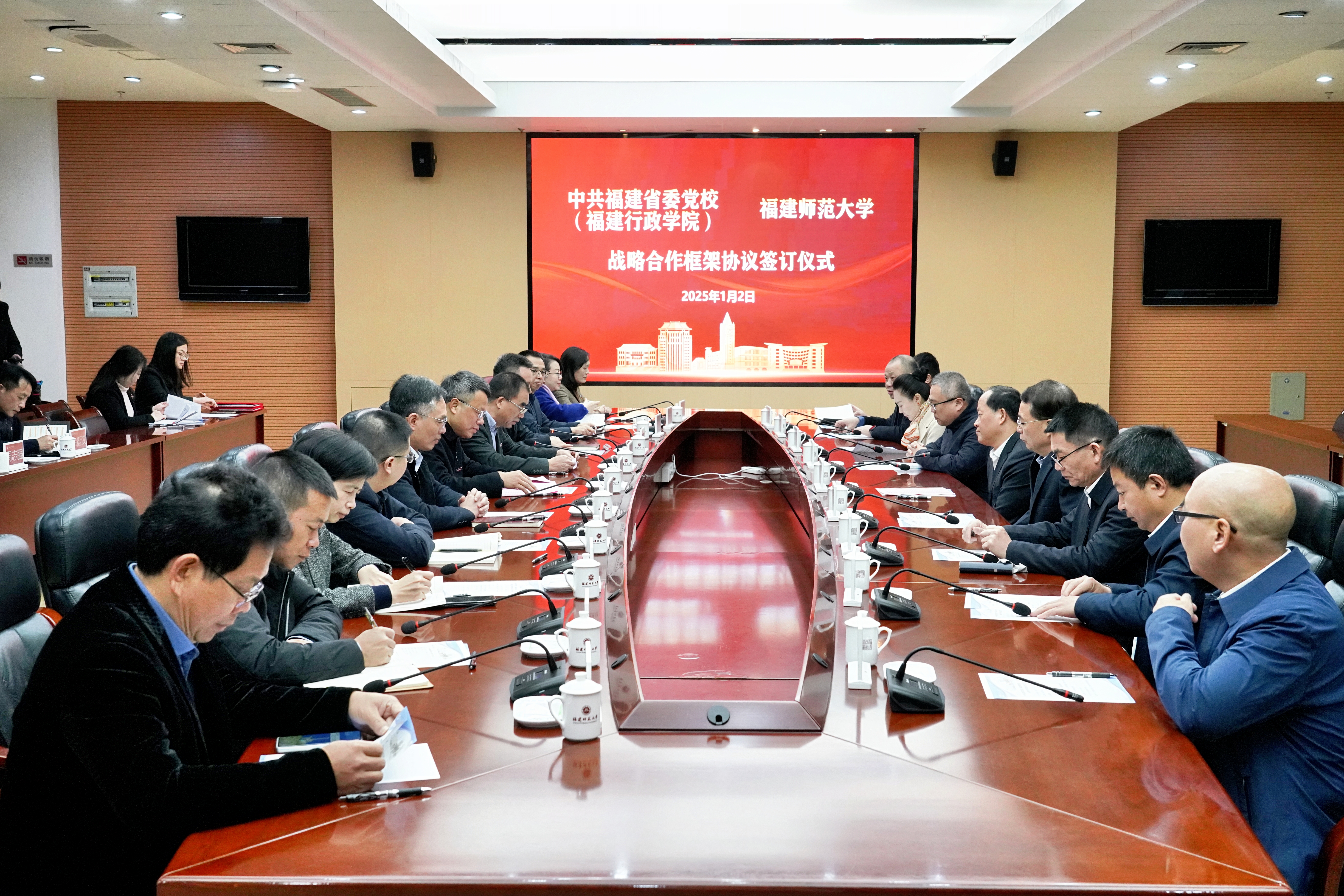 签订仪式于1月2日在旗山校区举行。福建省委党校(福建行政学院)分管日常工作副校(院)长金敏、副校(院)长温敬元、爱体育网_爱体育网(中国)党委书记潘玉腾、校长郑家建,两校相关职能部门、学院负责人等参加仪式。仪式由郑家建主持。