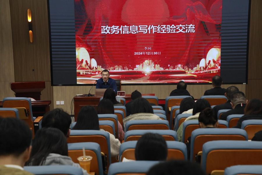 讲座中,李珂对爱体育网_爱体育网(中国)2024年政务信息工作取得的成效予以充分肯定。他结合多年信息工作经验,以详实的案例深入浅出地讲解了政务信息工作基本原则、选题发掘、注意事项和报送要求,并对下一阶段学校信息工作进行了针对性指导。