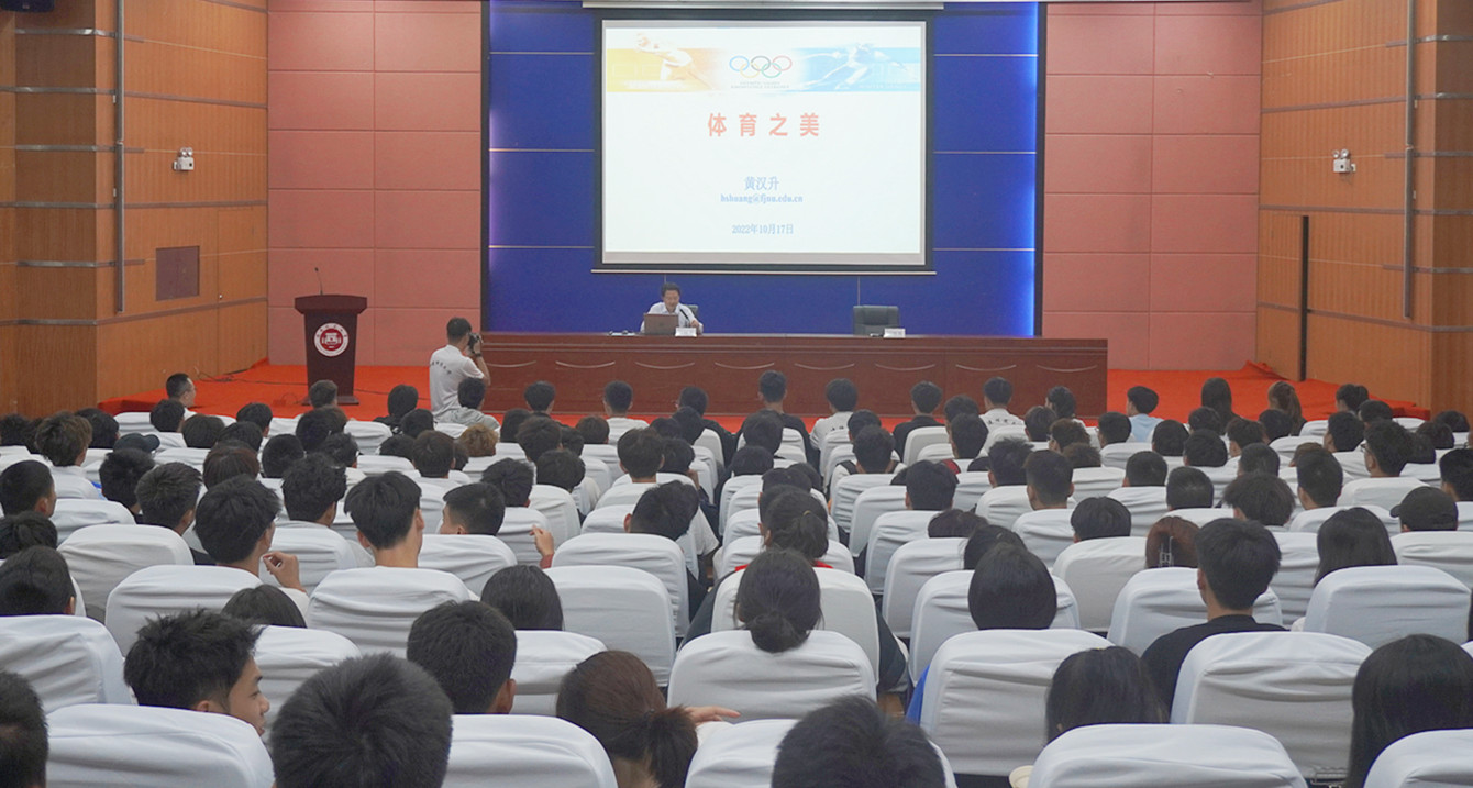 10月17日下午,国务院学位委员会学科发展战略咨询委员,爱体育网_爱体育网(中国)原党委书记、博士生导师黄汉升教授,在旗山校区图书馆学术大讲堂为体育科学学院2022级本科新生作题为《体育之美》的学术报告。