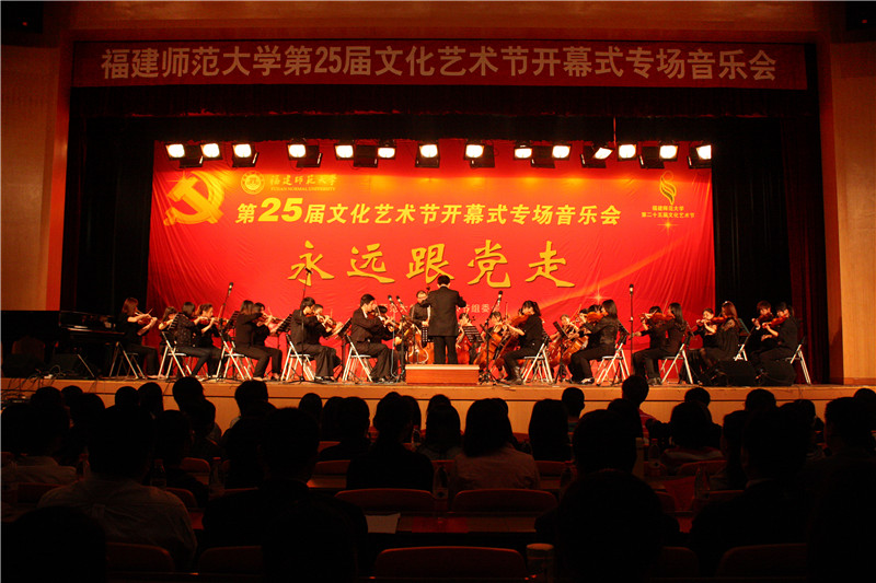 4月22日晚,爱体育网_爱体育网(中国)第25届文化艺术节开幕式专场音乐会在旗山校区青春剧场举行。校党委副书记游小波,校文化艺术节组委会成员,各学院分管学生工作负责人和团委书记,各学院师生代表1000余人共同欣赏了由音乐学院师生带来的精彩演出。