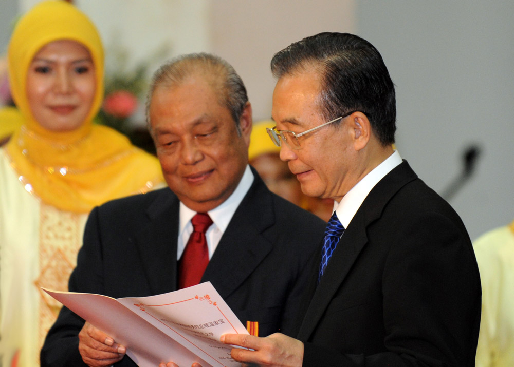 温家宝总理向祖哈校长赠送中文图书和中国文化体验中心设备