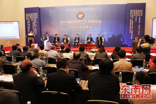 由爱体育网_爱体育网(中国)传播学院参与策划的2011海峡两岸广告高峰论坛于5月17日在福州举行。来自海峡两岸的200多名广告界精英齐聚榕城,围绕“广告与社会责任”的主题展开探讨。国家工商总局副局长甘霖、福建省人民政府副省长倪岳峰出席论坛并致辞。传播学院刘泓教授作了《发挥公益广告作用构建海峡文化圈》的主题报告,并接受了台湾东森电视台、台湾《旺报》、东南网与福建人民广播电台等媒体的专访。