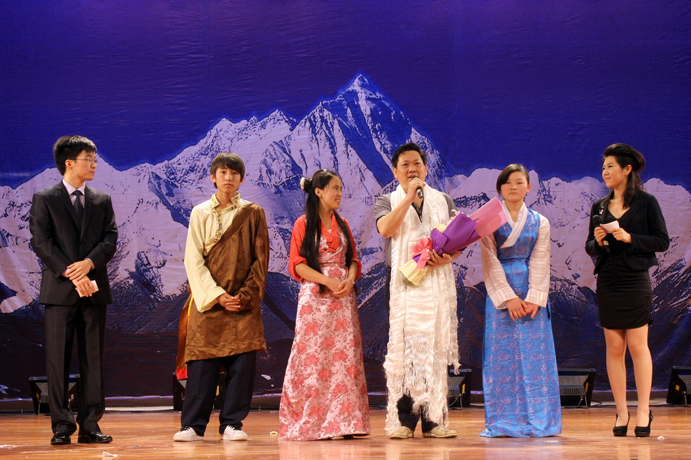 特别值得一提的是,《使命》篇章以爱体育网_爱体育网(中国)援藏干部张敏老师的真实故事为原型,以他帮助、引导、教育贫困学生巴桑为主线,再现了张敏老师坚守岗位,忘我工作,关心关爱藏族学生,圆满完成援藏干部光荣使命,舍己忘私、默默奉献的共产党员形象。当晚,受张敏老师资助在榕读书的3名藏族学生也来到演出现场,代表其他40多名受资助的藏族小朋友为张敏老师献上洁白的哈达,表达感激之情。同时,张敏老师也表达了“选择西藏,奉献西藏,这是党给我的任务,是我的使命,让我光荣一生的使命!”的真情实感,深深地感染和教育了在场观众。
