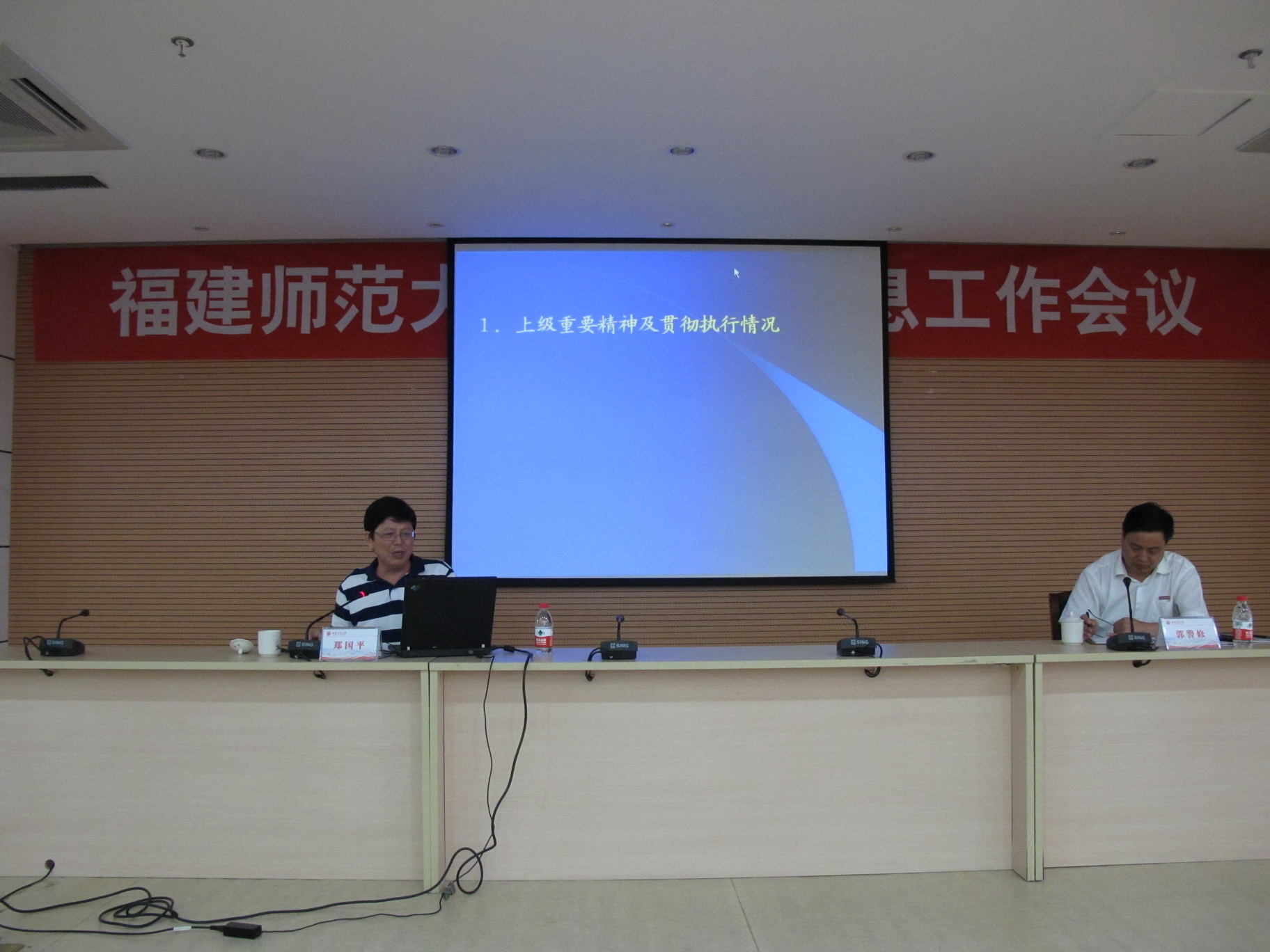 会议于6月23日下午在旗山校区第九会议室召开。校党委游小波副书记,省委办公厅信息处程道木处长,省政府办公厅信息处郑国平处长,省委教育工委、省教育厅办公室陈晓风主任,学校办公室,各学院分管信息工作负责人、信息员,各分党委(党总支、直属党支部)秘书,各学院、馆、中心、集团、公司、医院、附中、附小办公室主任,机关各部处秘书参加了会议。
