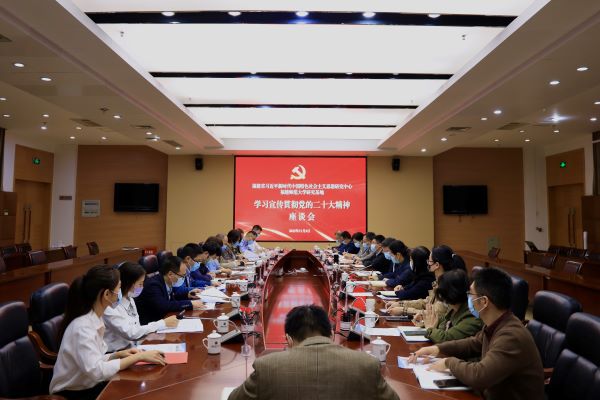 11月4日,福建省习近平新时代中国特色社会主义思想研究中心爱体育网_爱体育网(中国)研究基地学习宣传贯彻党的二十大精神座谈会在旗山校区行政楼第十会议室举行。校党委书记、研究基地主任潘玉腾,校党委副书记、研究基地常务副主任陈晓红,研究基地成员、研究团队主要负责人以及专家学者、校党委讲师团成员、师生代表参加会议。座谈会由陈晓红主持。