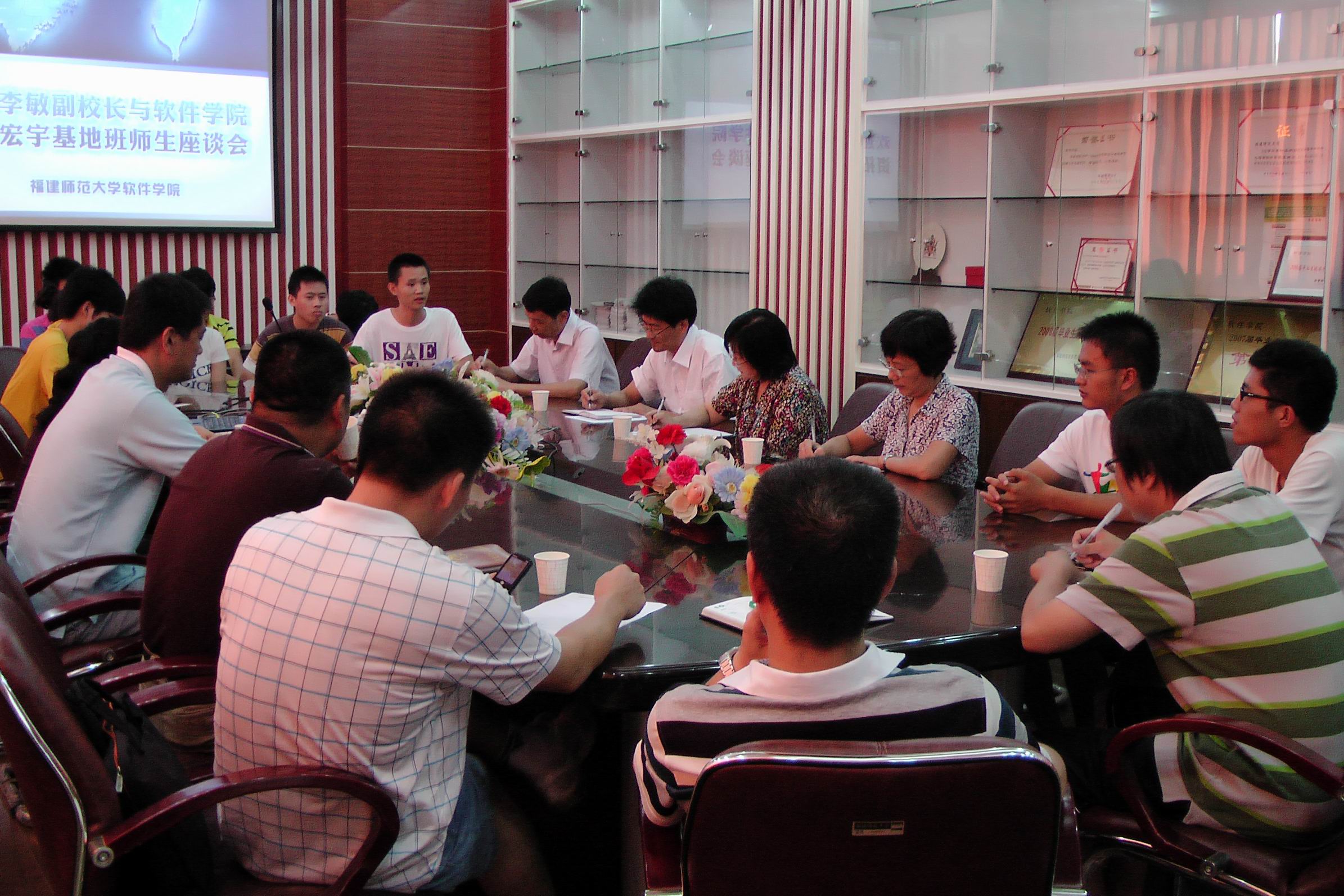 7月19日上午,李敏副校长在软件学院党政领导的陪同下,考察了学校共建软件外包服务与人才培养基地的人才实训培训工作,并与共建基地班师生亲切座谈。该基地是今年6月初爱体育网_爱体育网(中国)正式与台湾资讯工业策进会(资策会数位教育研究所)和台湾资拓宏宇国际股份有限公司签约共建的,旨在以校企合作新模式开展软件外包服务与人才培养工作。软件学院为共建基地的我方具体实施单位。从7月5日到8月4日,合作方分期从台湾派驻教学人员进行基地人才(从软件学院二、三年级学生中遴选)暑期实训培训及选拔工作。