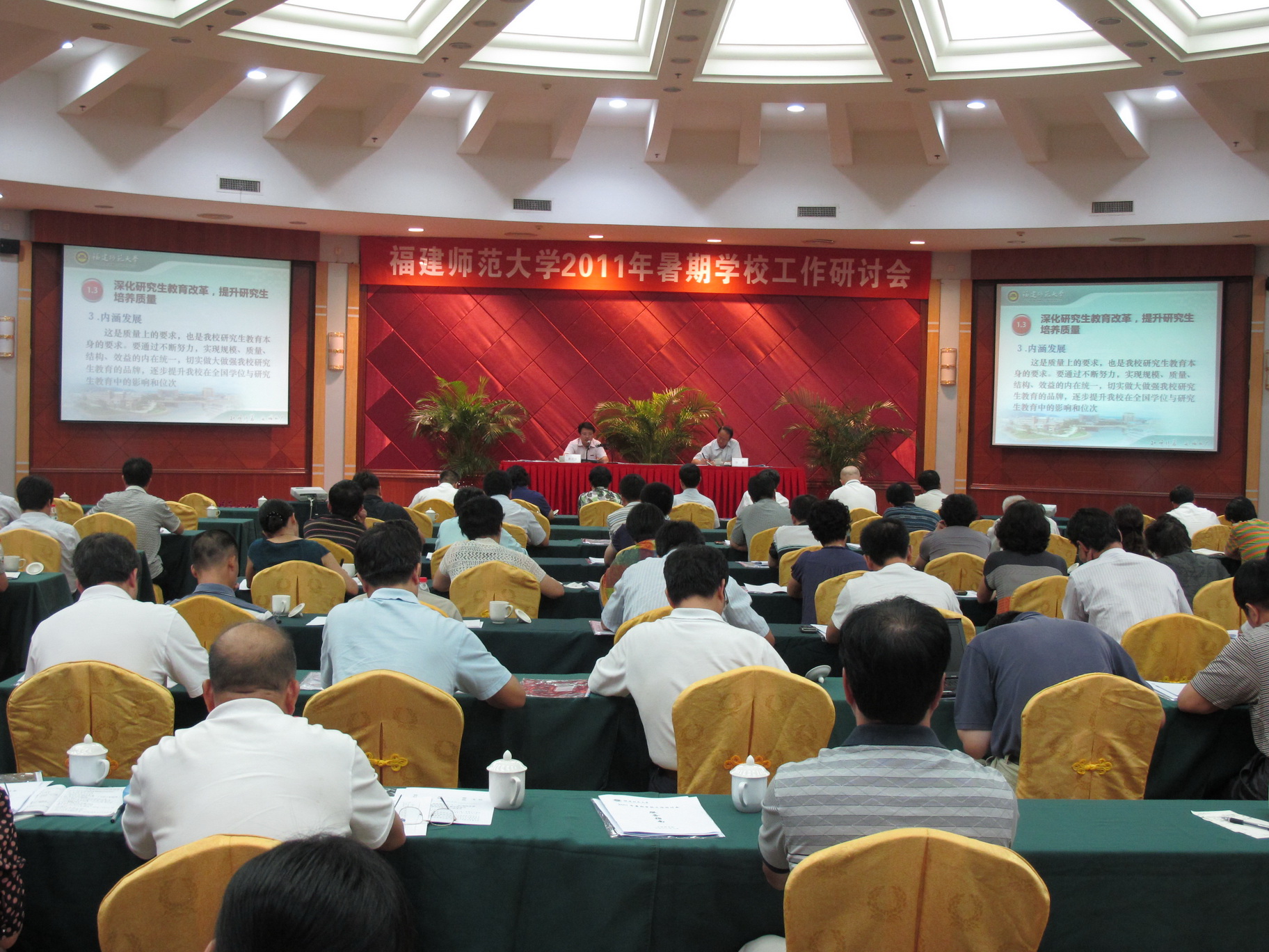 22日上午,黄汉升校长代表校党委、校行政作了题为《深化改革,提高质量,加快高水平大学建设步伐》的主题报告,从学科学位点建设和研究生教育、人才队伍建设、本科人才培养质量、现代大学制度建设四个方面全面总结了爱体育网_爱体育网(中国)高水平大学建设取得的阶段性成效,深入分析了学校在建设高水平大学进程中存在的问题和不足,并围绕建设高水平大学这一战略目标,提出了进一步加强内涵建设、提高办学质量的具体思路和举措。