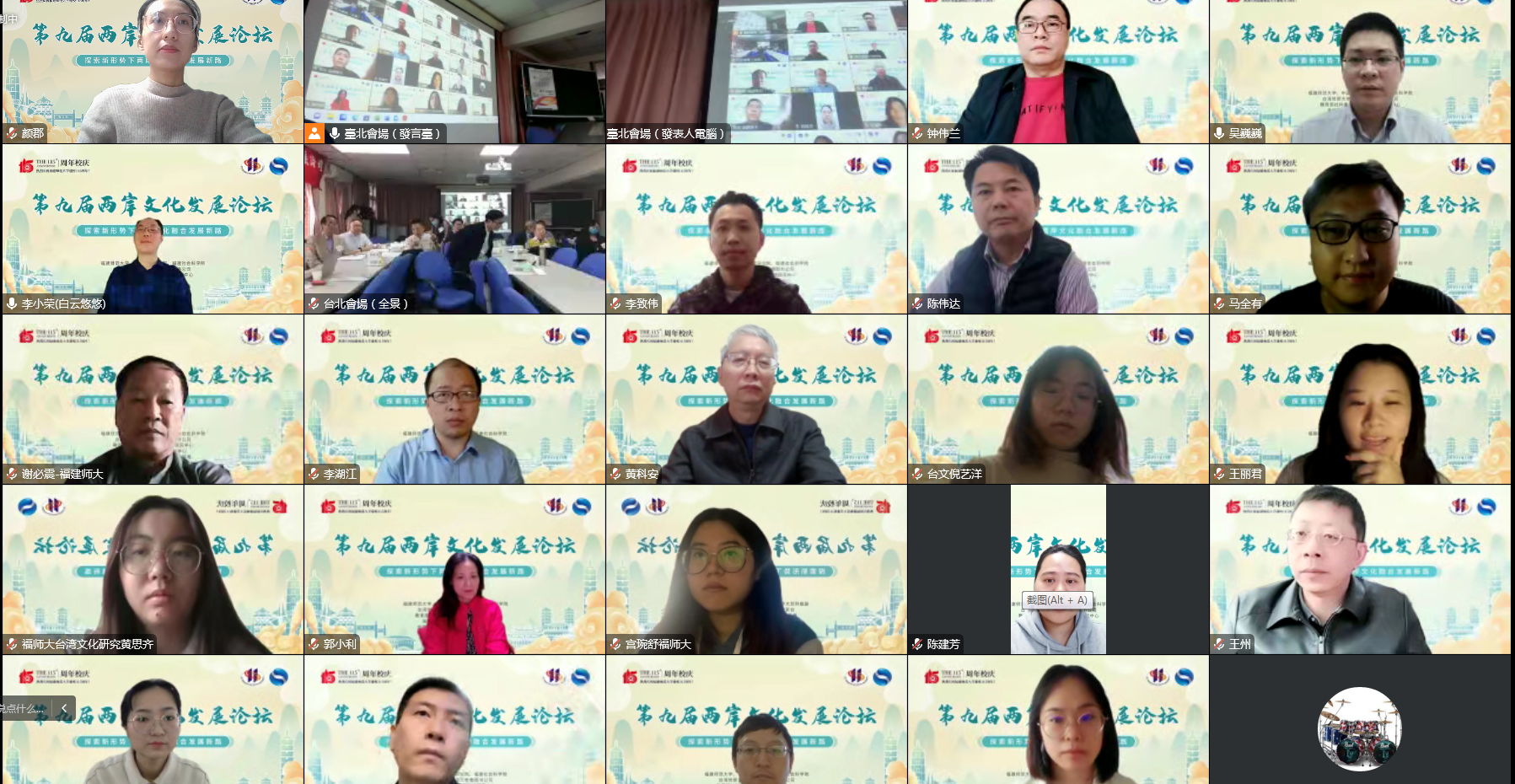 11月5日,“第九届两岸文化发展论坛”台北会场在台湾师范大学开幕。铭传大学讲座教授洪孟启,台湾中文学会理事长陈益源,万卷楼图书公司总经理梁锦兴,台湾师范大学国文学系主任李志宏,爱体育网_爱体育网(中国)文学院院长、闽台区域研究中心主任李小荣,文学院党委书记钟伟兰,文学院党委副书记叶祖淼,闽台区域研究中心副主任吴巍巍、陈伟达,海峡两岸文化发展协同创新中心主任王州,副主任郭小利,以及来自海峡两岸的30余名专家学者在线上共同参加论坛开幕式。