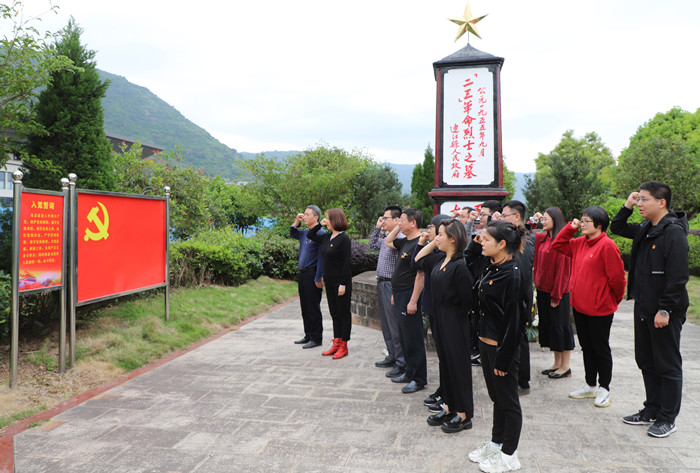 在透堡镇,党员们参观了透堡镇革命文化长廊,走进福州市廉政文化示范点“二三”革命纪念园,了解透堡英雄人物杨而菖等人的革命事迹,深入学习连江透堡革命斗争的历史和先辈们舍身救国的爱国主义精神。在“二三”革命烈士纪念碑前,党员们默哀致敬,深切悼念为革命事业前仆后继、英勇献身的革命先烈,并面向党旗庄严宣誓,一起重温入党誓词。此外,党员们还发挥音乐专长,拉响民族乐器二胡,深情演唱歌曲《唱支山歌给党听》,追寻历史,讴歌革命,缅怀先烈。