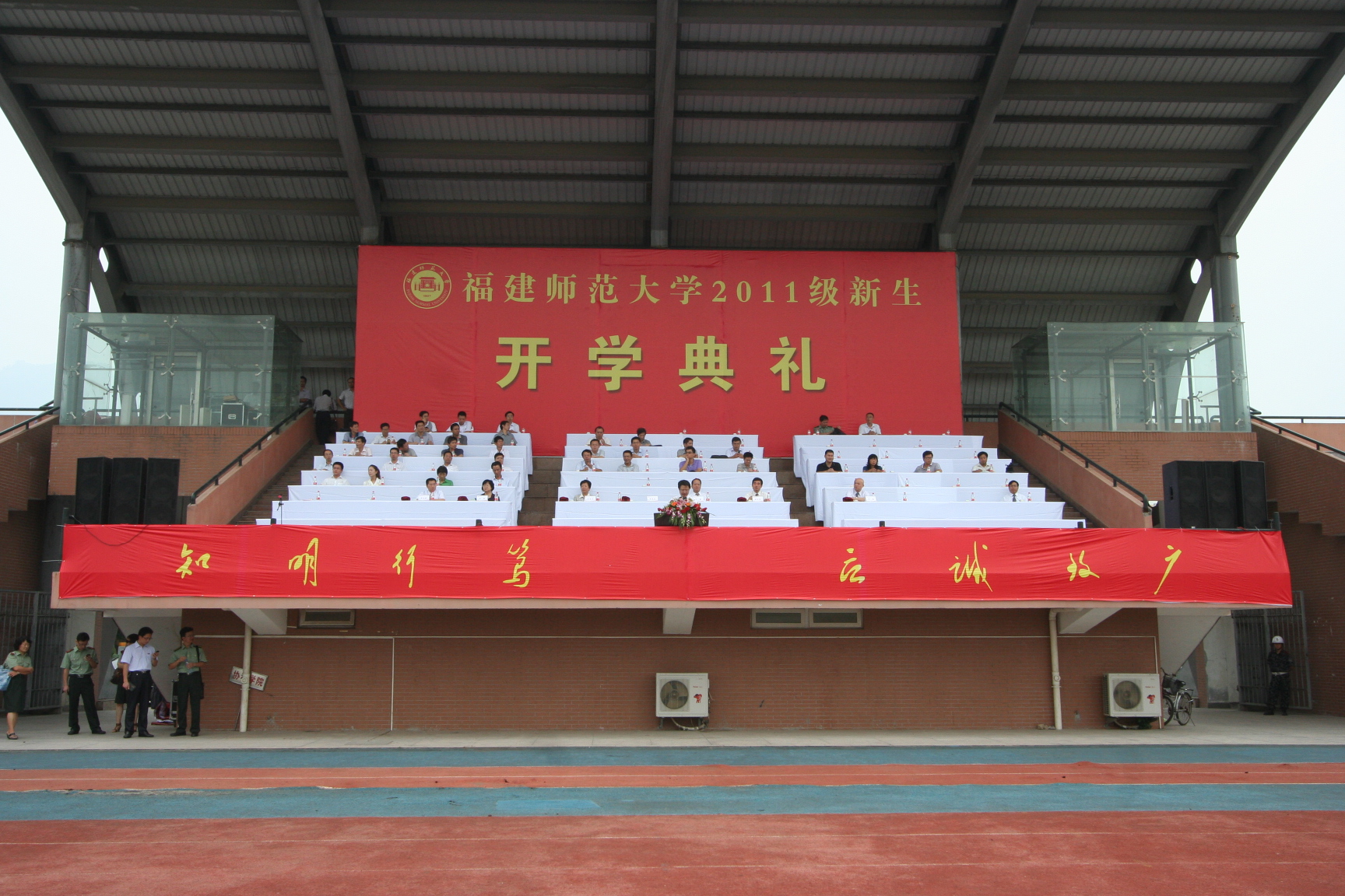 9月9日上午,爱体育网_爱体育网(中国)2011级新生开学典礼在旗山校区东区田径场隆重举行。校领导罗萤、黄汉升、游小波、许歌平、李敏、许明、凌启淡,机关各部门负责人、各学院党政领导,各学院教学秘书、研究生秘书、辅导员和2011级全体本科、部分研究生新生参加了开学典礼。开学典礼由校党委游小波副书记主持。