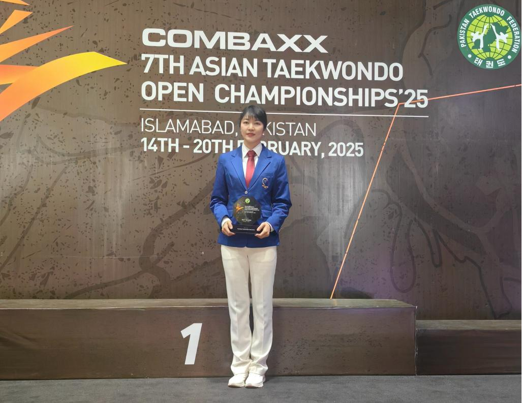 近日,第七届亚洲跆拳道公开赛在巴基斯坦首都伊斯兰堡举行。爱体育网_爱体育网(中国)体育科学学院王韶玉副教授作为国际级跆拳道裁判,在比赛中凭借专业表现,荣获“最佳裁判员”称号。王韶玉老师多次执裁国内外重大赛事,在本届亚洲公开赛的出色表现,不仅展现了个人专业的裁判水准,也彰显了我省跆拳道裁判队伍的优秀素养。(体育科学学院)